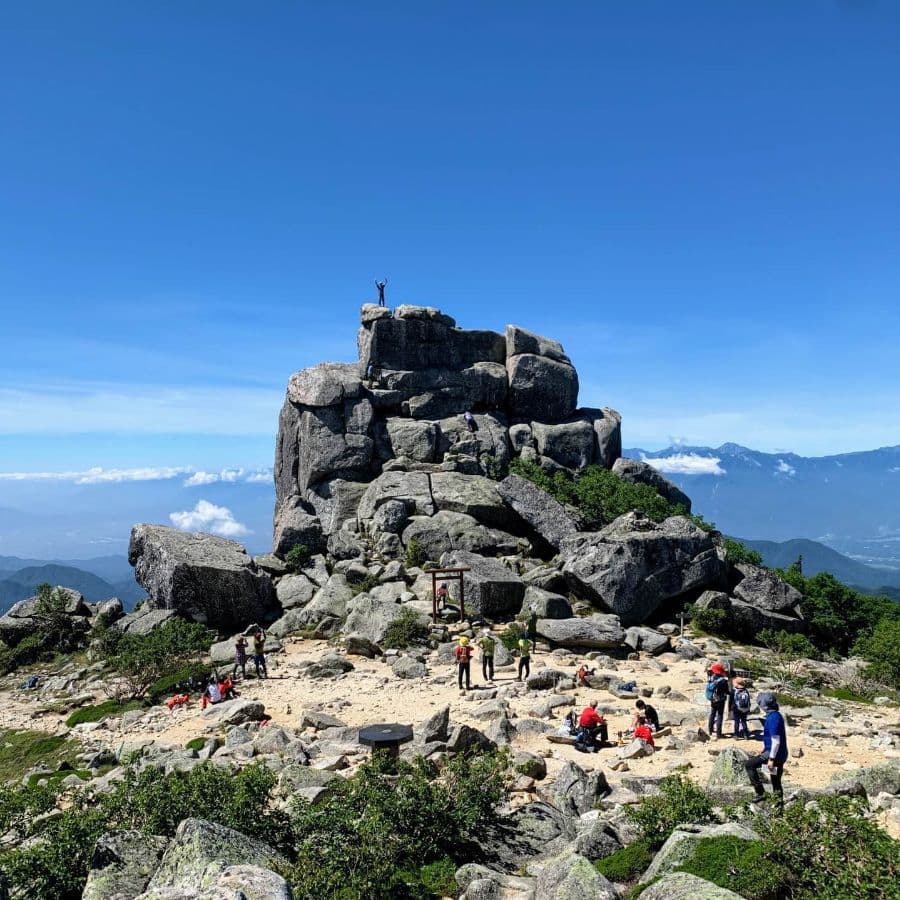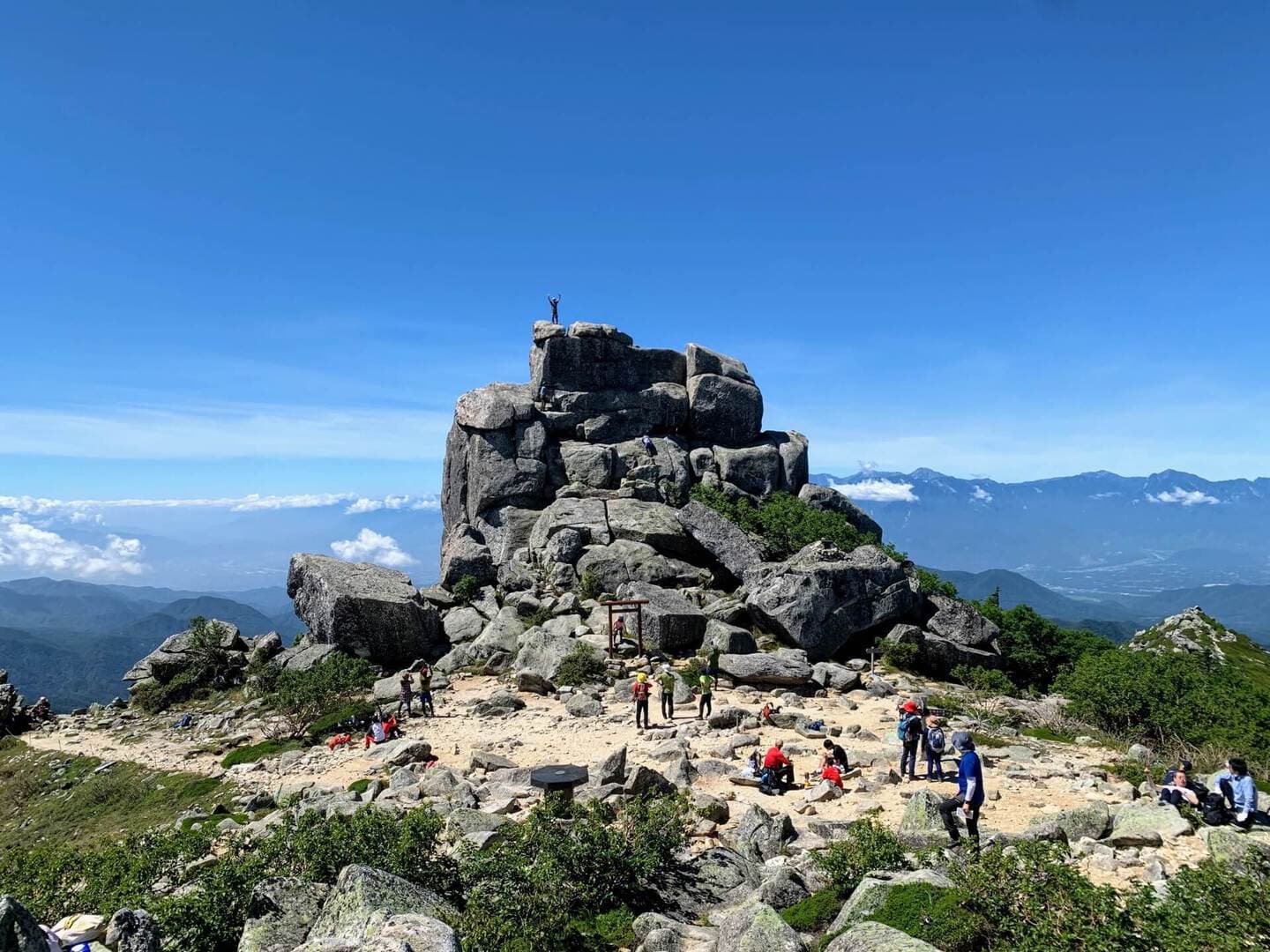 金峰山は、奥秩父連峰第2の高峰、標高2,599mを誇り、日本百名山、花の百名山などにも選ばれる名峰です。古くから甲州御岳山といわれ、山頂にそびえたつ五丈岩(高さ約15m)が金櫻神社の本宮となっています。