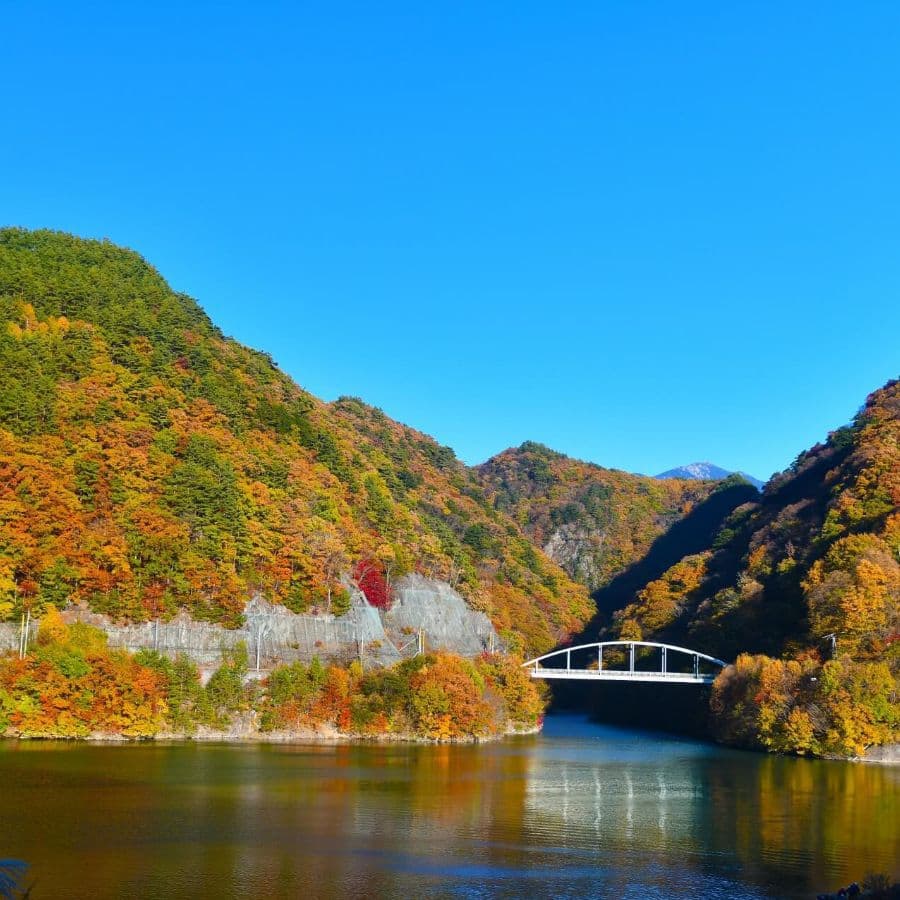 1997年に完成した富士川水系、塩川のダムのダム湖であるみずがき湖は、白いアーチ橋に周囲の緑や紅葉が映える、美しい湖です。周いを散歩やドライブしながら一周でき、湖畔には観光案内をしてくれるビジターセンターや展望台、ダムの施設が点在します。